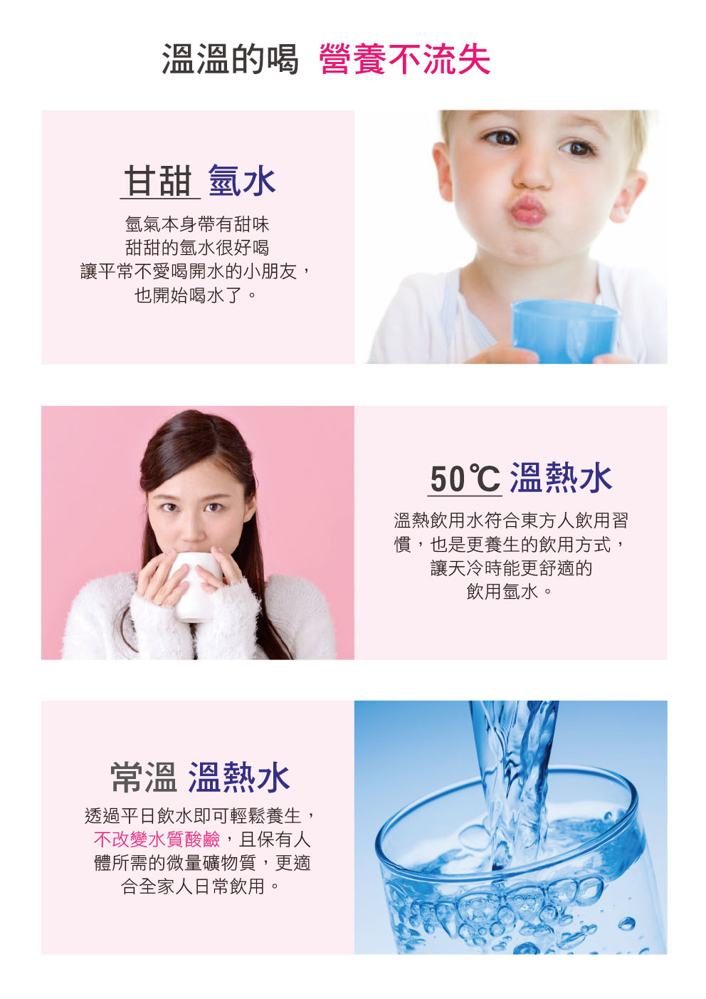 氫水濃度:1.0 - 1.2 ppm* (製氫時間約15分鐘)