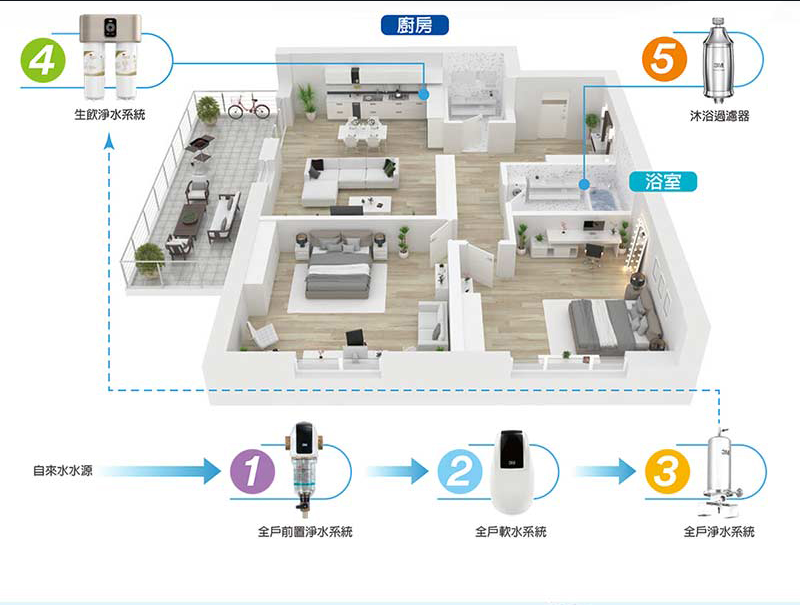 ◆保護用水設備:避免大顆粒雜質侵蝕管壁和用水設備,延長其使用壽命、保護全戶淨水/軟水主體設備。