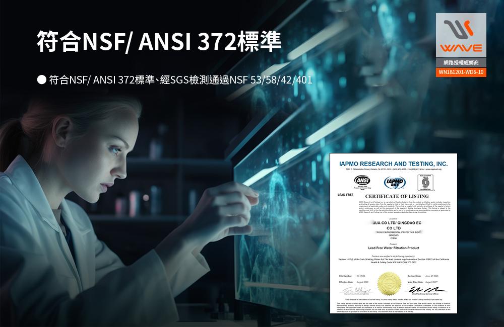 ◆符合NSF/ ANSI 372標準、經SGS檢測通過NSF 53/58/42/401