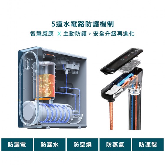 ◆五道安全防護機制,防漏電、防漏水、防空燒、防蒸氣、防凍裂。